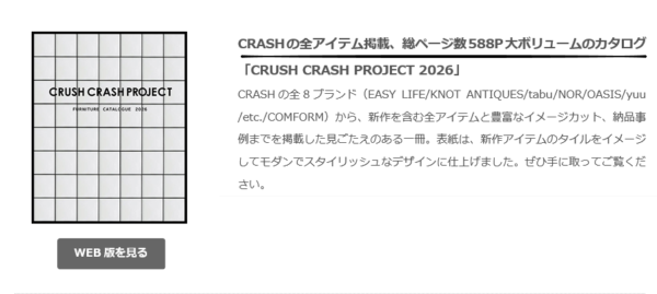 家具の人気ブランド「CRUSH CRASH PROJECT」の2026versionが発表されました