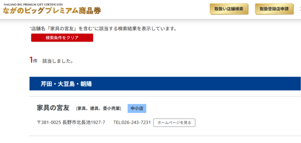 ↑こちらから、プレミアム商品券の詳細、取り扱い店舗を検索頂けます。